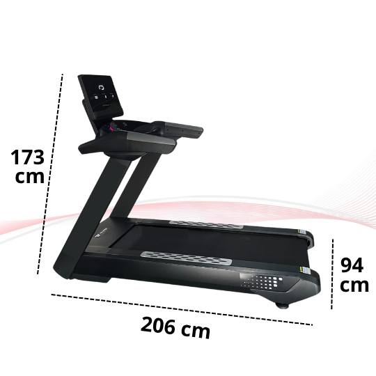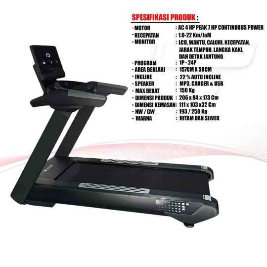 Motor AC komersial yang digunakan mendukung penggunaan intensif setiap hari. Kecepatan terasa stabil, bahkan saat dipakai untuk sesi interval. Rangka kokohnya menjaga keseimbangan saat pengguna meningkatkan tempo lari.